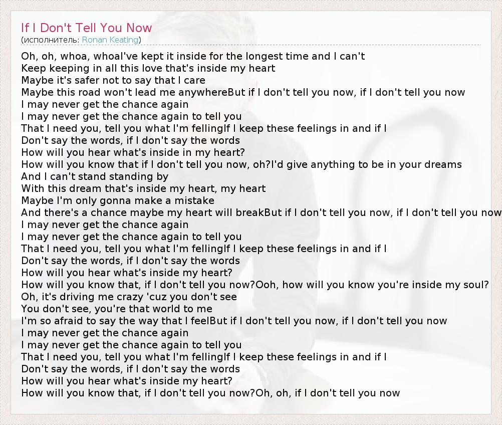 А как ты думаешь, о чем песня "If I Don't Tell You Now" ?