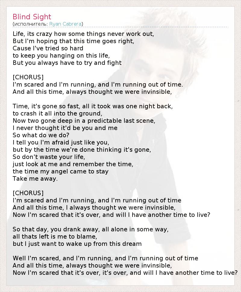 Well I'm scared, and I'm running, and I'm running out of time