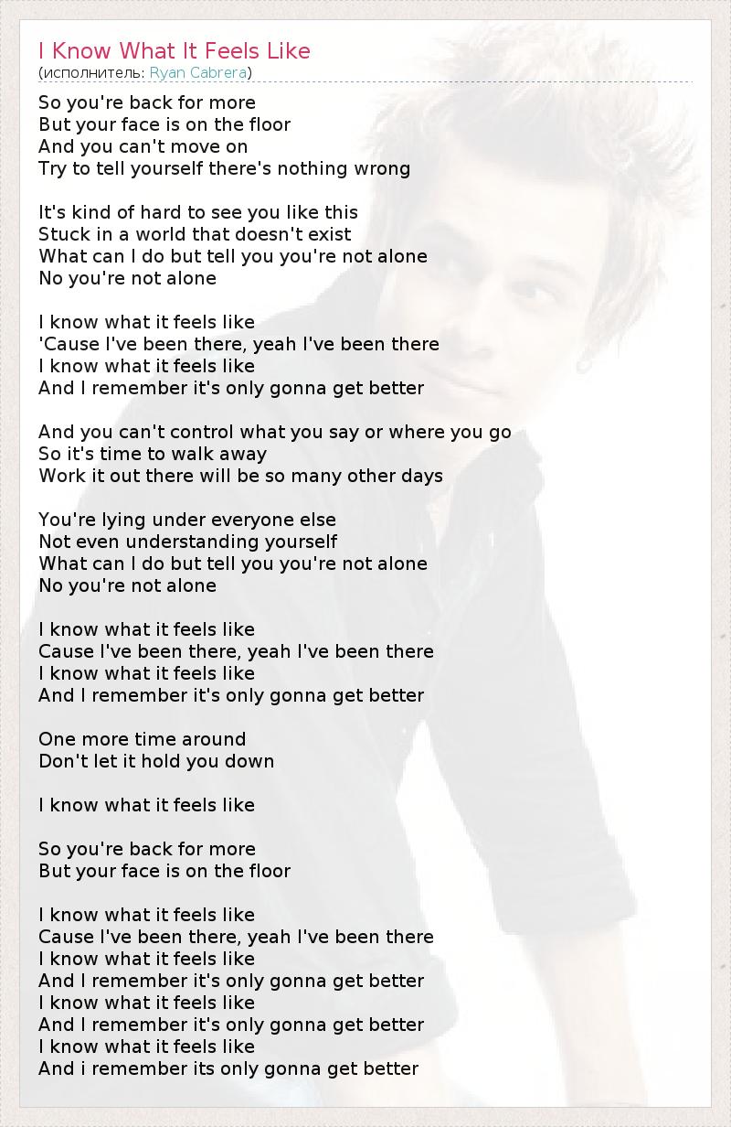 ГлавнаяИсполнителиRyan CabreraI Know What It Feels Like