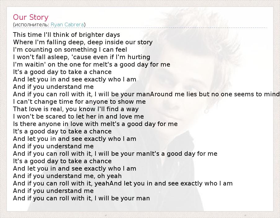Это интересно:Ryan Frank Cabrera родился 18.07.1982 г в Далласе, штат Техас. Увлечение музыкой началось в 15 лет, когда Ryan Cabrera приобрел акустическую гитару и написал свою первую песню. В это время его друзья создали свою группу CAIN, куда он и был приглашен в качестве гитариста и бэквокалиста. Через некоторое время Ryan Cabrera понял, что перерос эту группу и покинул ее. Дальше следовало огромное количество творческих коллективов... продолжение