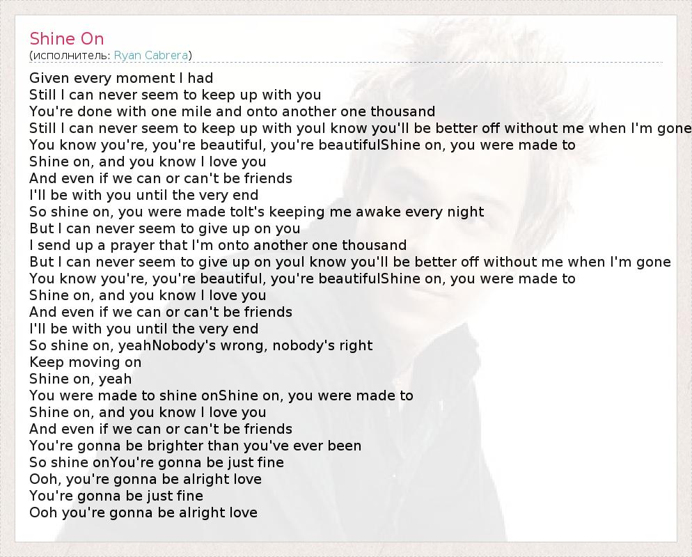 You know you're, you're beautiful, you're beautifulShine on, you were made to
