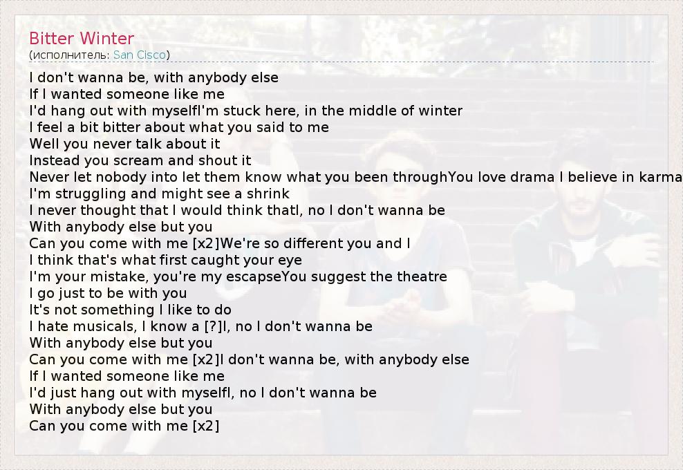 А как ты думаешь, о чем песня "Bitter Winter" ?