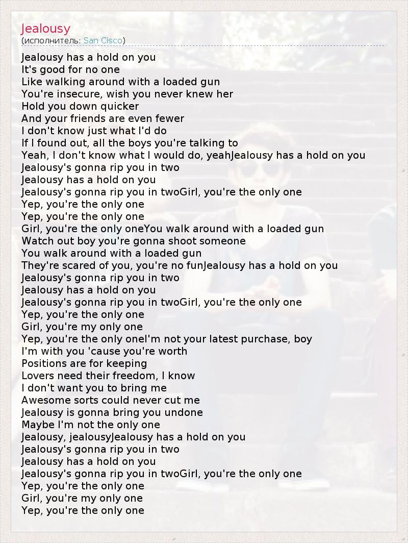 Jealousy's gonna rip you in twoGirl, you're the only one