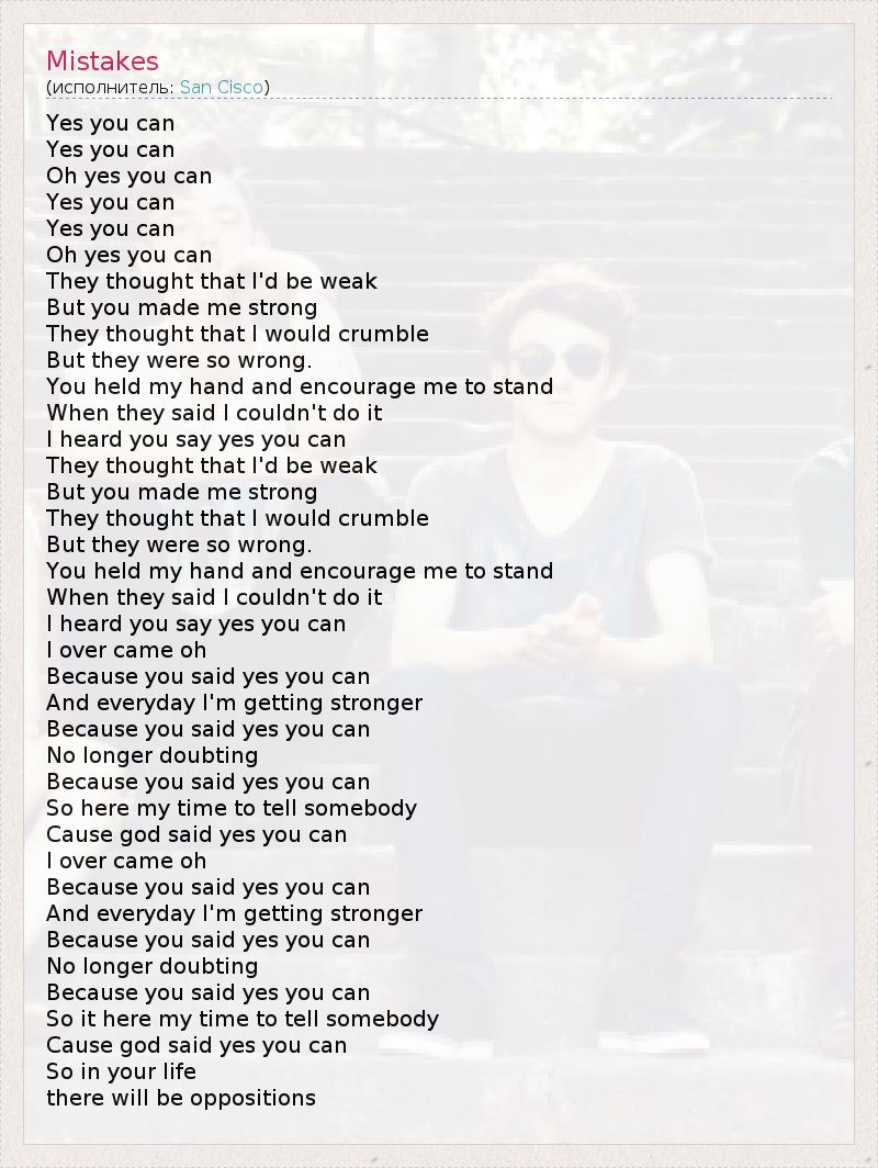 А как ты думаешь, о чем песня "Mistakes" ?