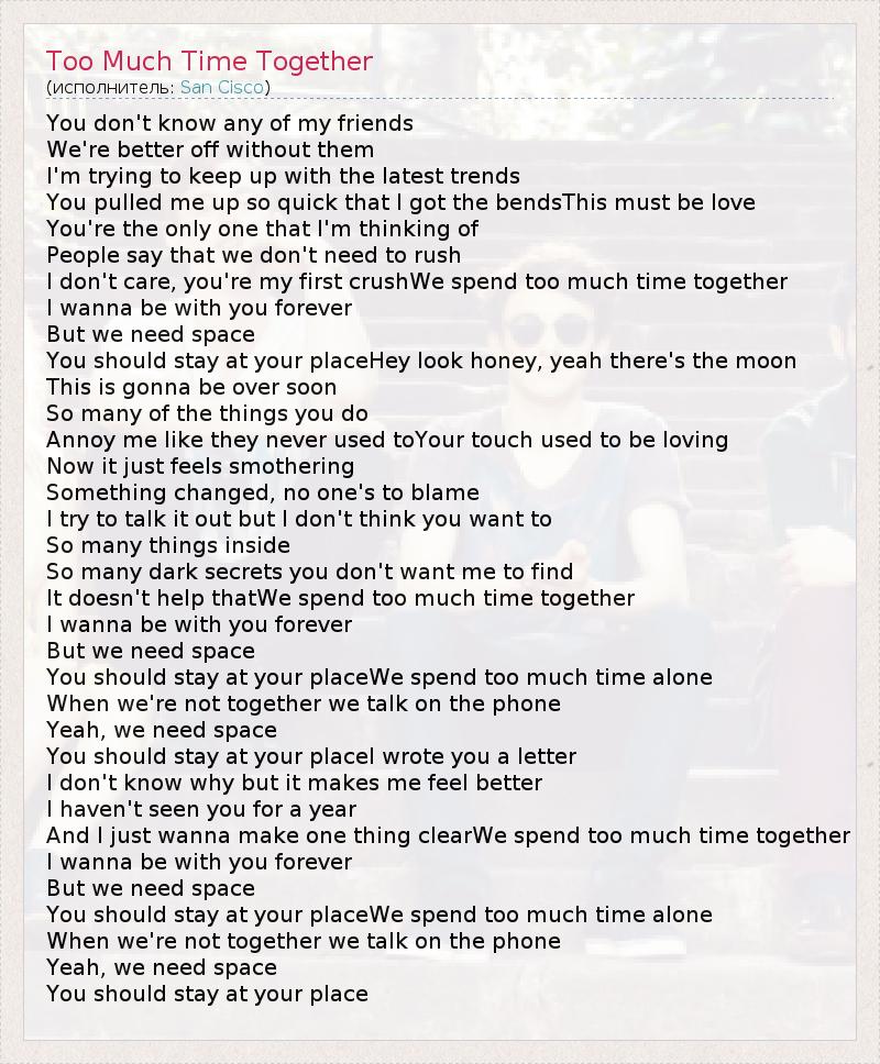 А как ты думаешь, о чем песня "Too Much Time Together" ?