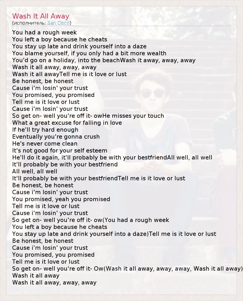 А как ты думаешь, о чем песня "Wash It All Away" ?