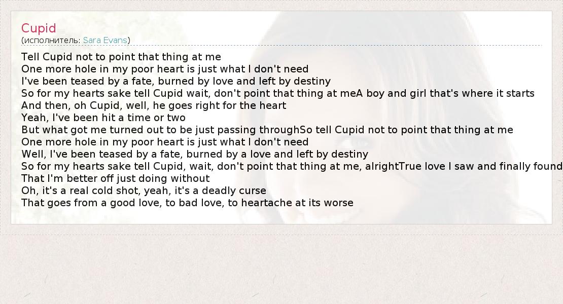 But what got me turned out to be just passing throughSo tell Cupid not to point that thing at me