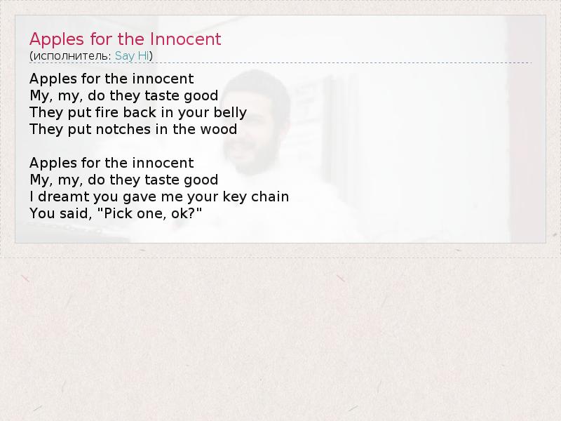 А как ты думаешь, о чем песня "Apples for the Innocent" ?