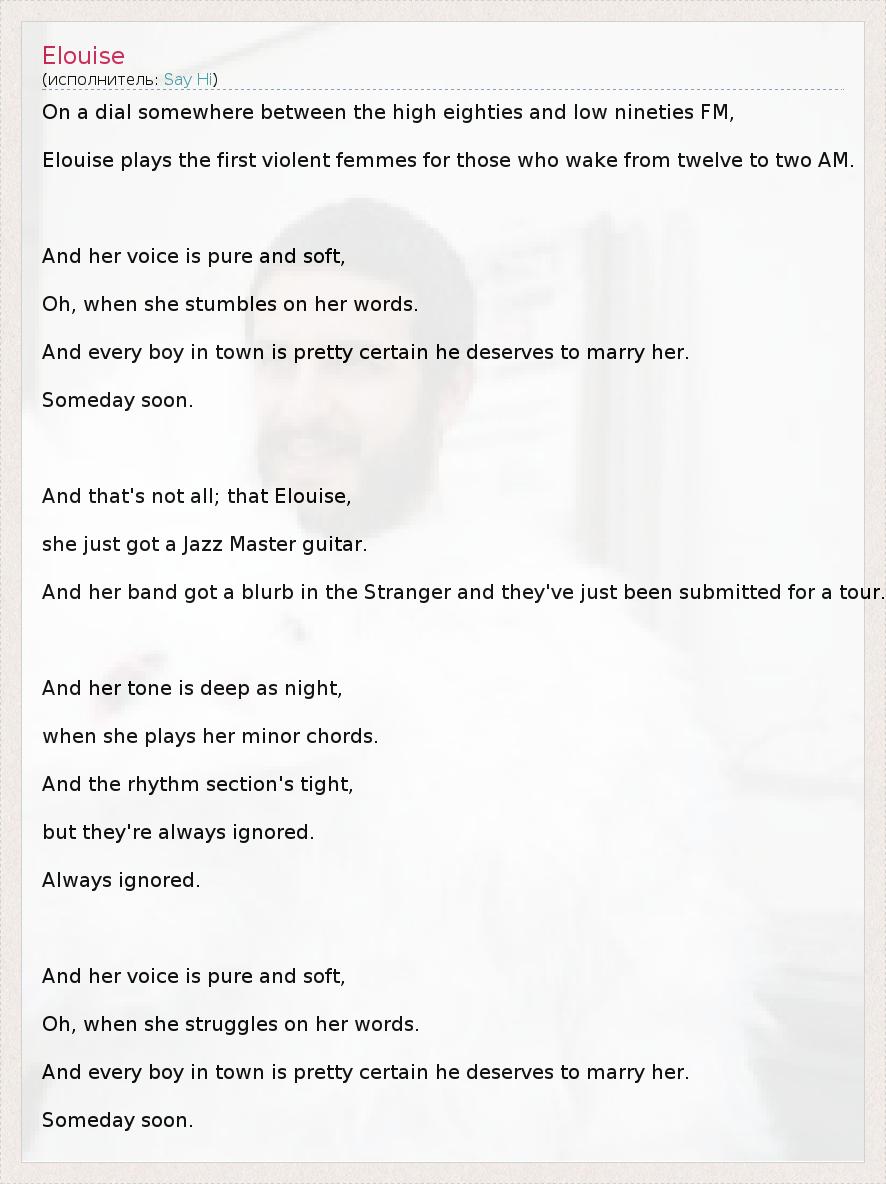 А как ты думаешь, о чем песня "Elouise" ?