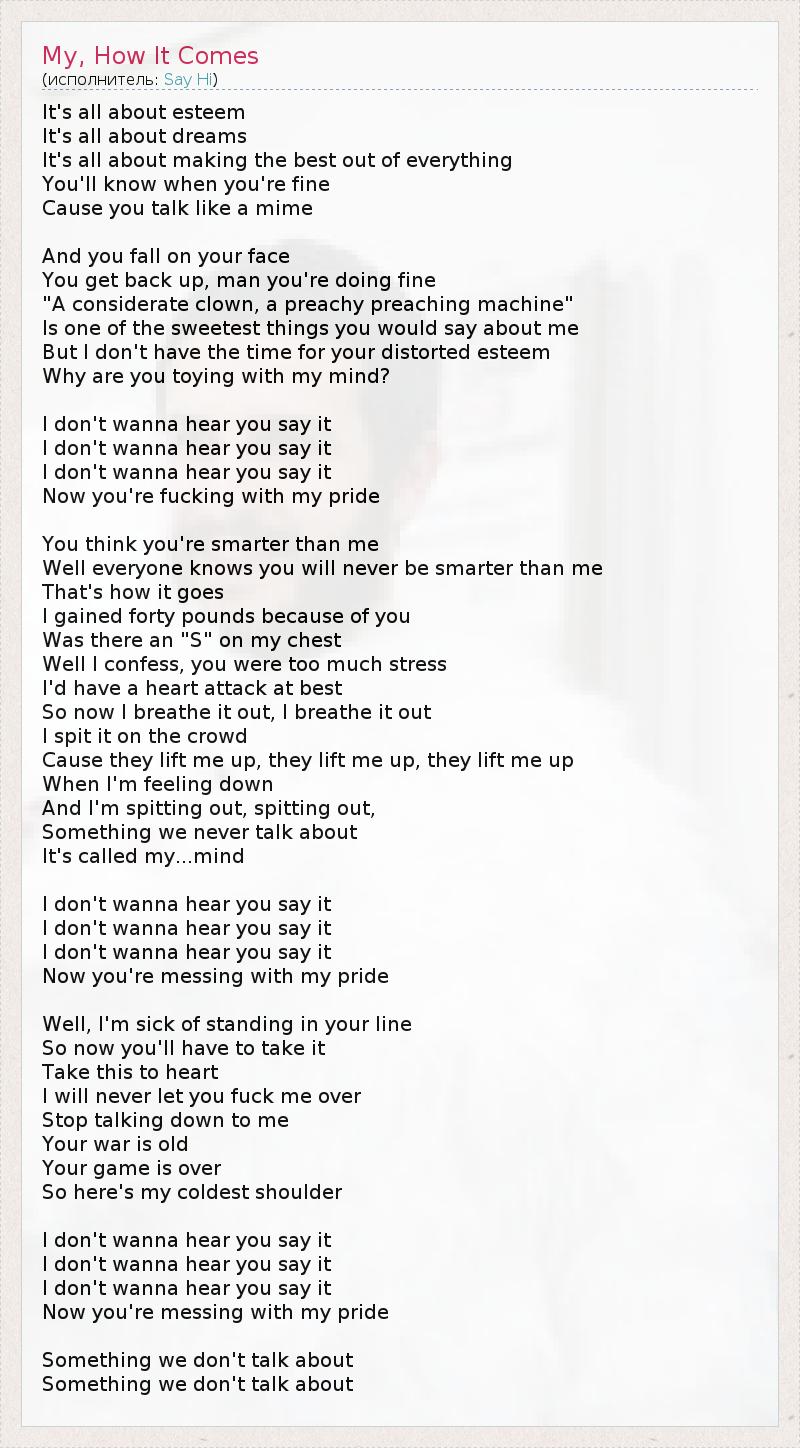 А как ты думаешь, о чем песня "My, How It Comes" ?