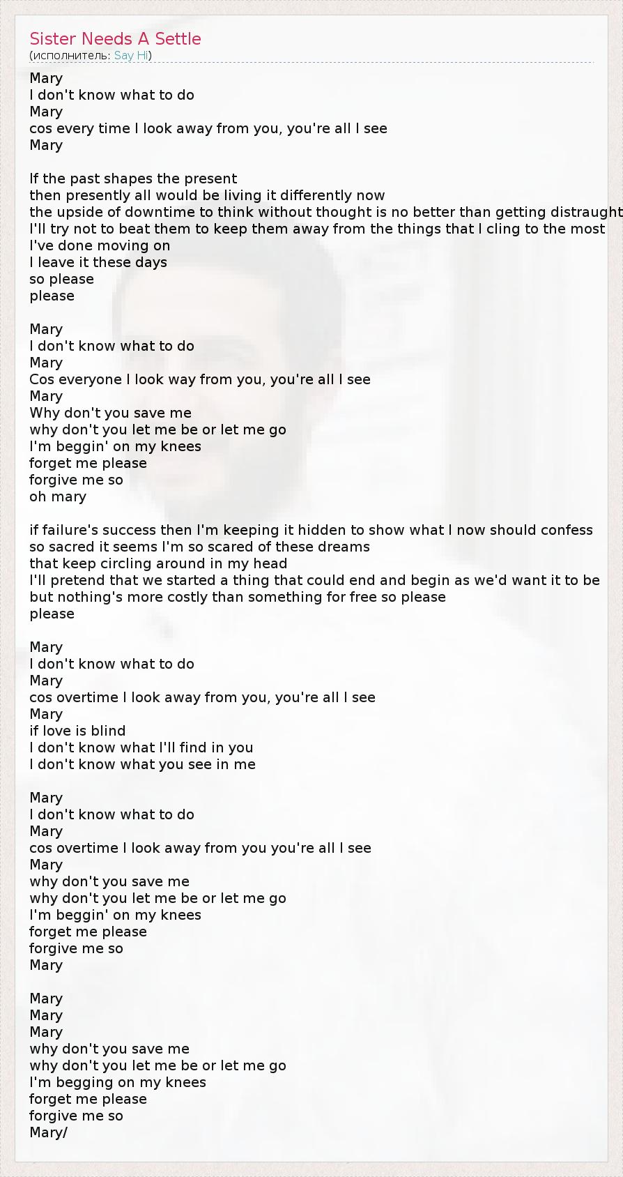 ГлавнаяИсполнителиSay HiSister Needs A Settle