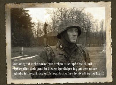 Schutzstaffel - андерграундный one-man martial industrial проект, еще одно лицо, уже знакомого нам по группе Fasci Di Cambattimento, молодого музыканта из Болгарии Борислава Вакинова, возникший в конце 2008 в одном маленьком городке в Болгарии по имени Велико Търново (англ. Veliko Tarnovo). Schutzstaffel рисует нам картину фашистского призрака, летающего по Европе двадцатого века. "Наша наиболее эффективная защита... продолжение