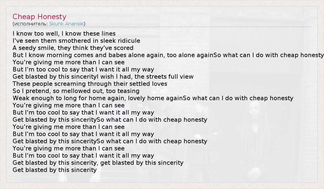 А как ты думаешь, о чем песня "Cheap Honesty" ?