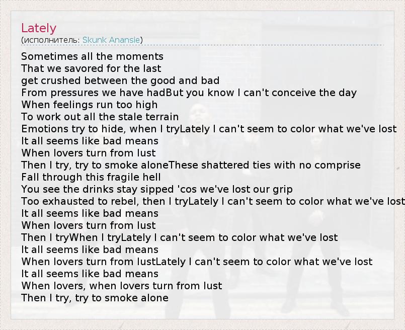 А как ты думаешь, о чем песня "Lately" ?