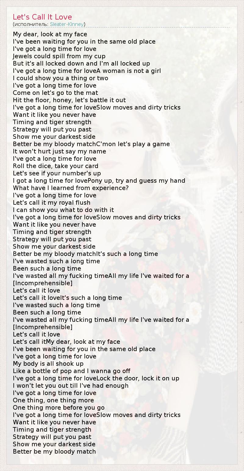 А как ты думаешь, о чем песня "Let's Call It Love" ?