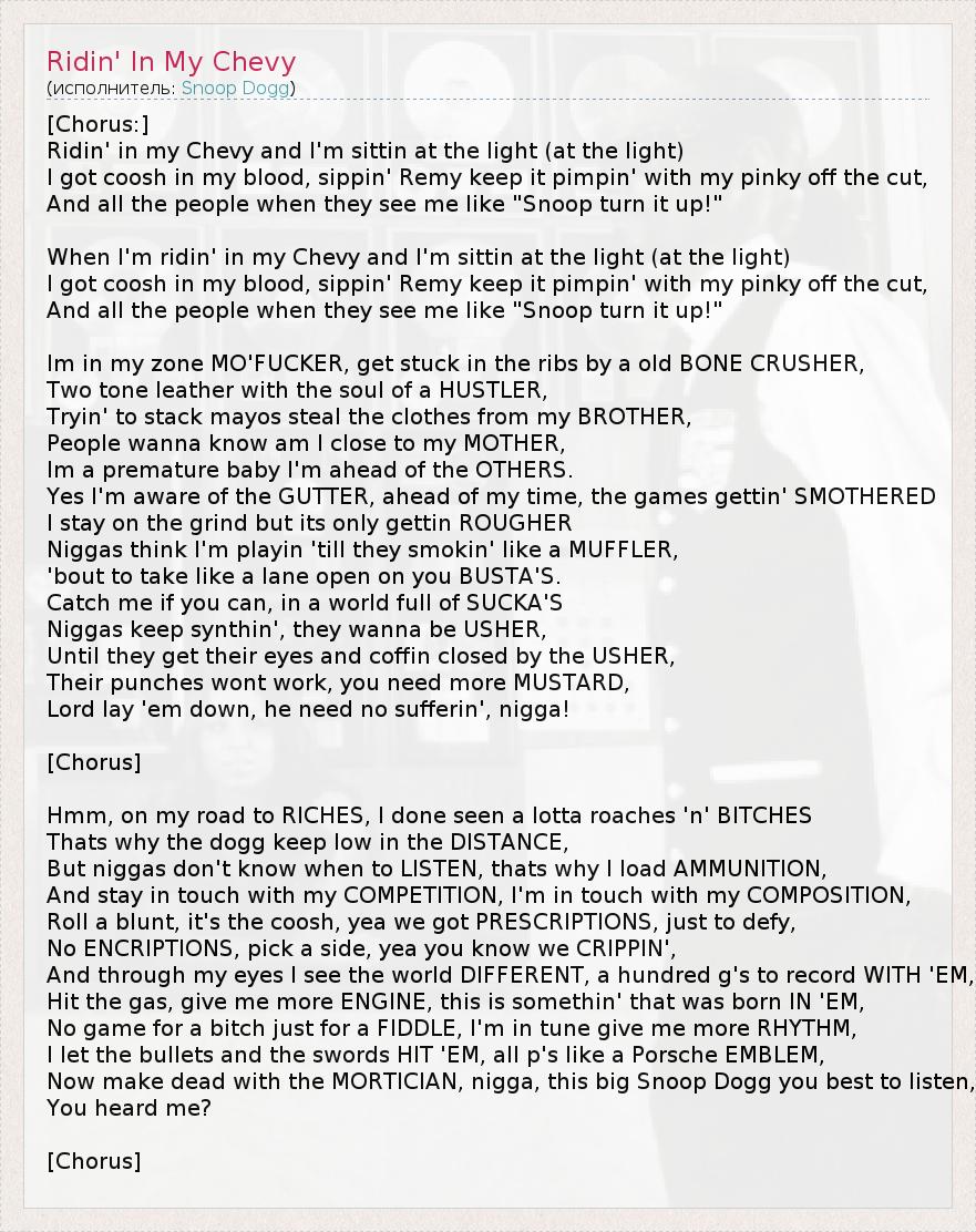 А как ты думаешь, о чем песня "Ridin' In My Chevy" ?