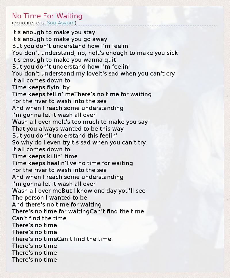А как ты думаешь, о чем песня "No Time For Waiting" ?