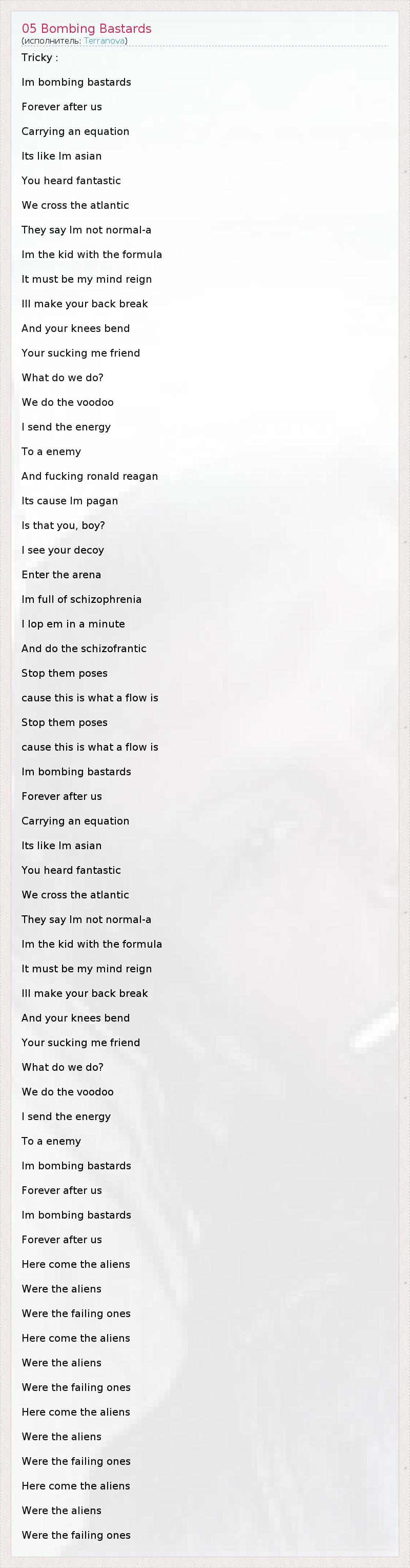 А как ты думаешь, о чем песня "05 Bombing Bastards" ?