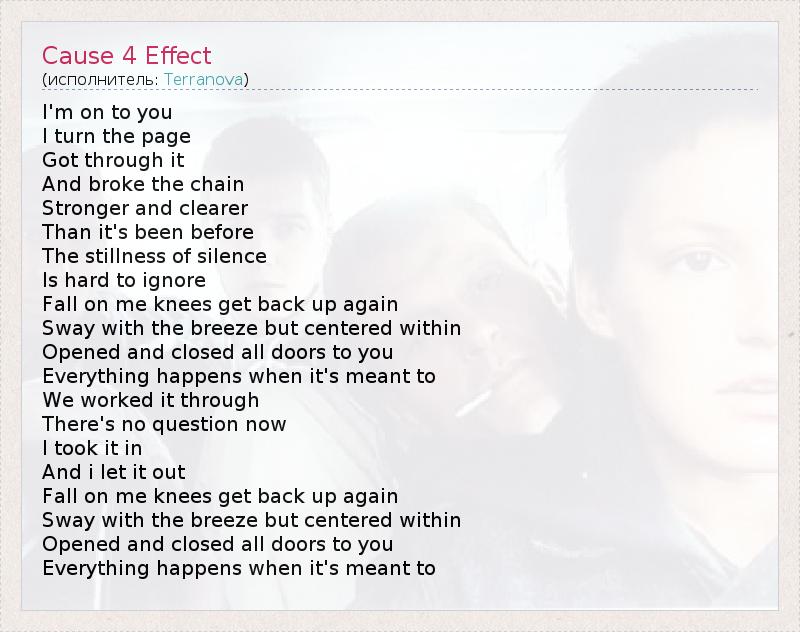 А как ты думаешь, о чем песня "Cause 4 Effect" ?