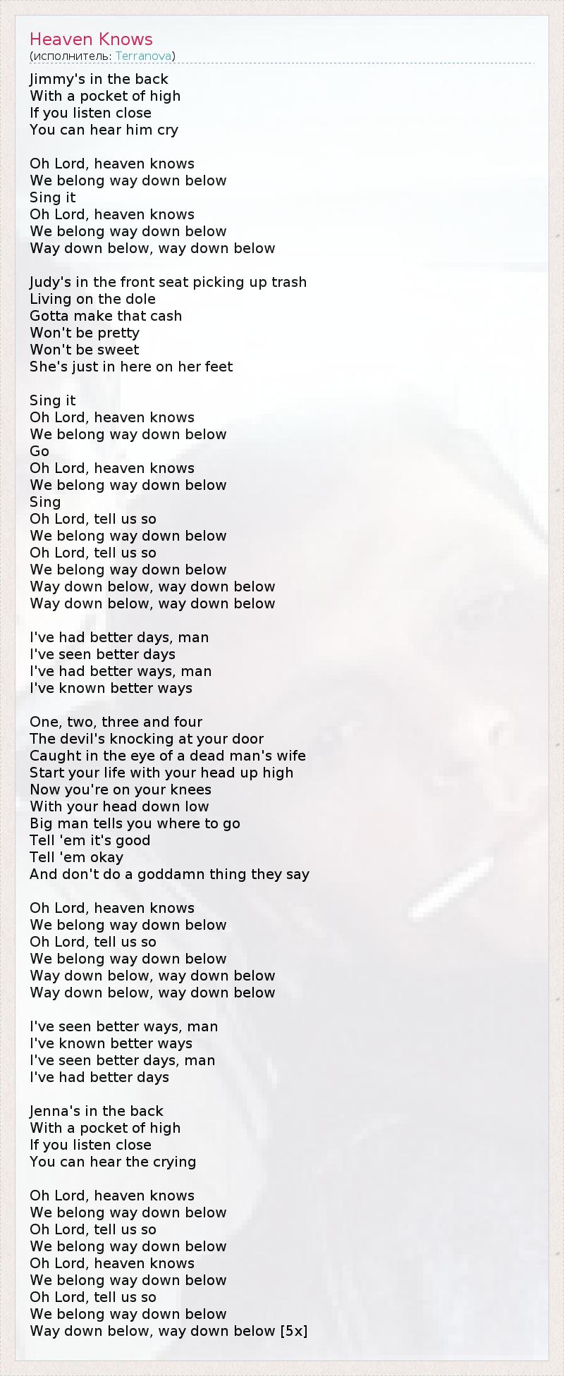 А как ты думаешь, о чем песня "Heaven Knows" ?