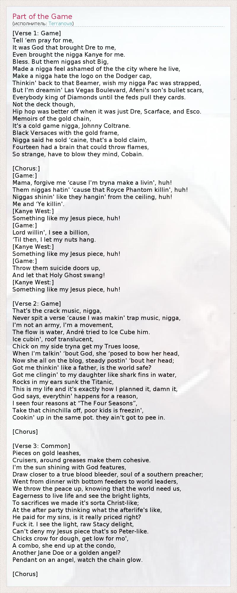 А как ты думаешь, о чем песня "Part of the Game" ?