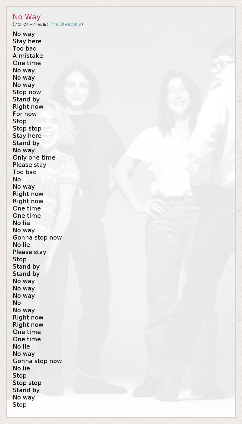 No way Stay here Too bad A mistake One time No way No way No way Stop now Stand by Right now For now Stop Stop stop Stay here Stand by No way Only one time Please stay Too bad No No way Right now Right now One time One time No lie No way Gonna stop now No lie Please stay Stop Stand by Stand by No way No way No way No No way Right now Right now One time One time No lie No way Gonna stop now No lie Stop Stop stop Stand by No way Stop