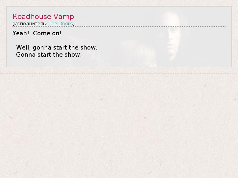 А как ты думаешь, о чем песня "Roadhouse Vamp" ?
