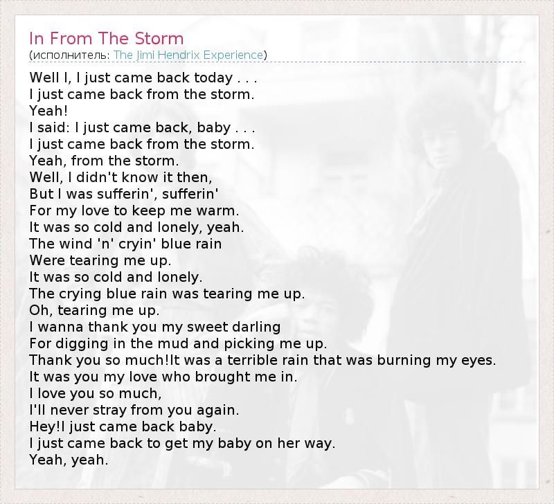А как ты думаешь, о чем песня "In From The Storm" ?