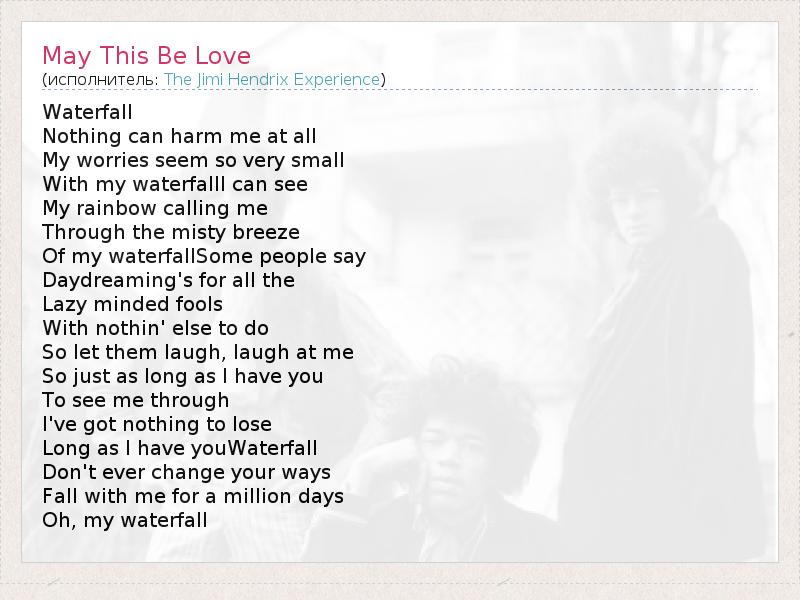 А как ты думаешь, о чем песня "May This Be Love" ?