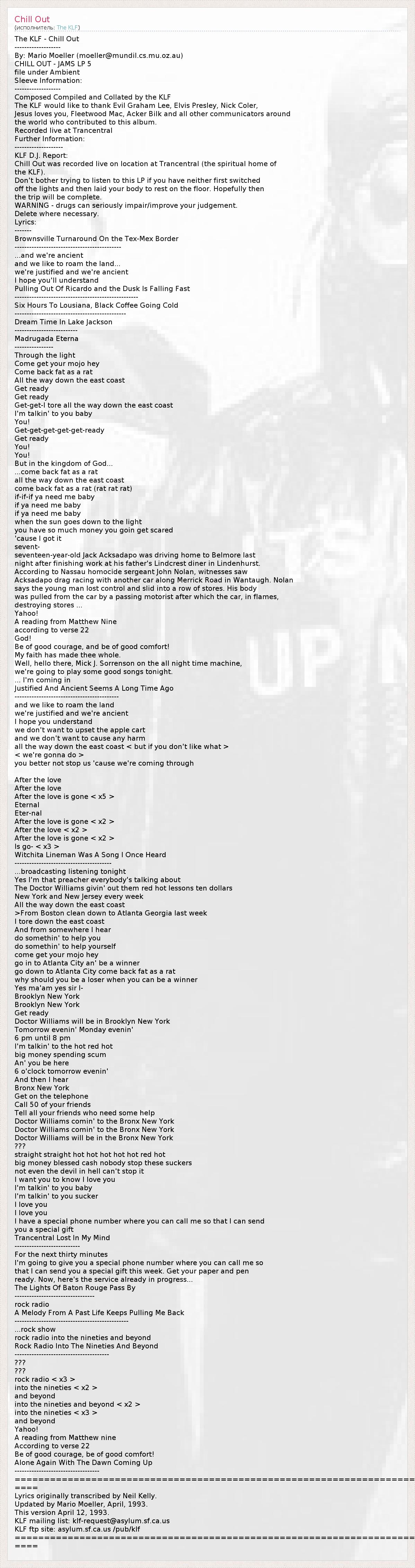 The KLF would like to thank Evil Graham Lee, Elvis Presley, Nick Coler,