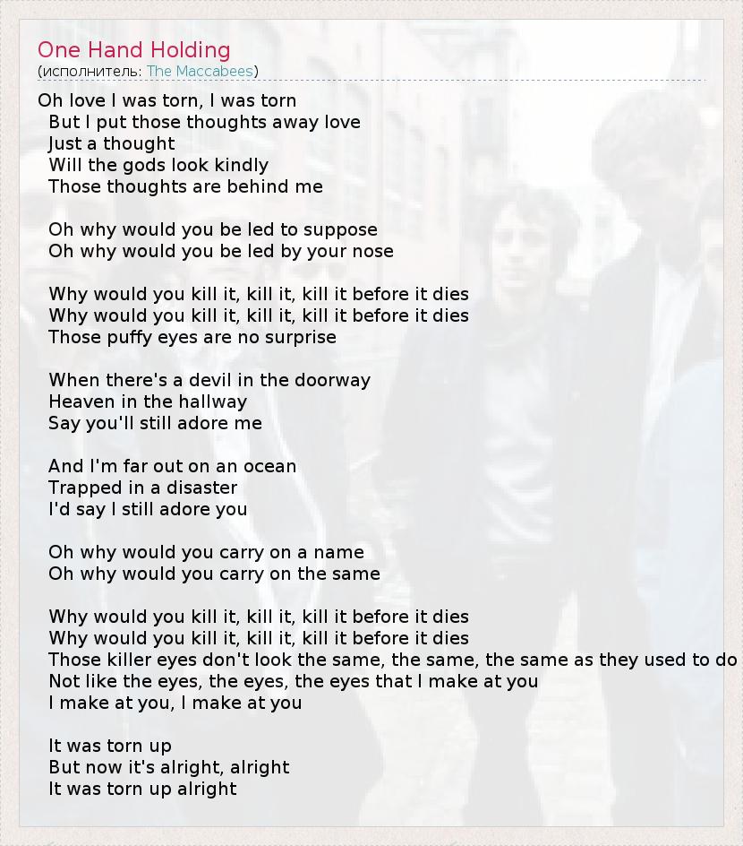 А как ты думаешь, о чем песня "One Hand Holding" ?