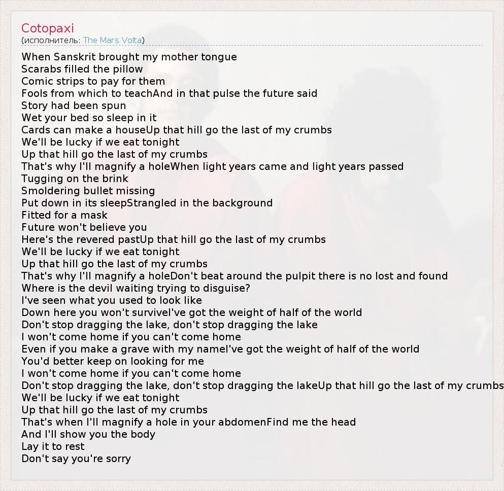 А как ты думаешь, о чем песня "Cotopaxi" ?
