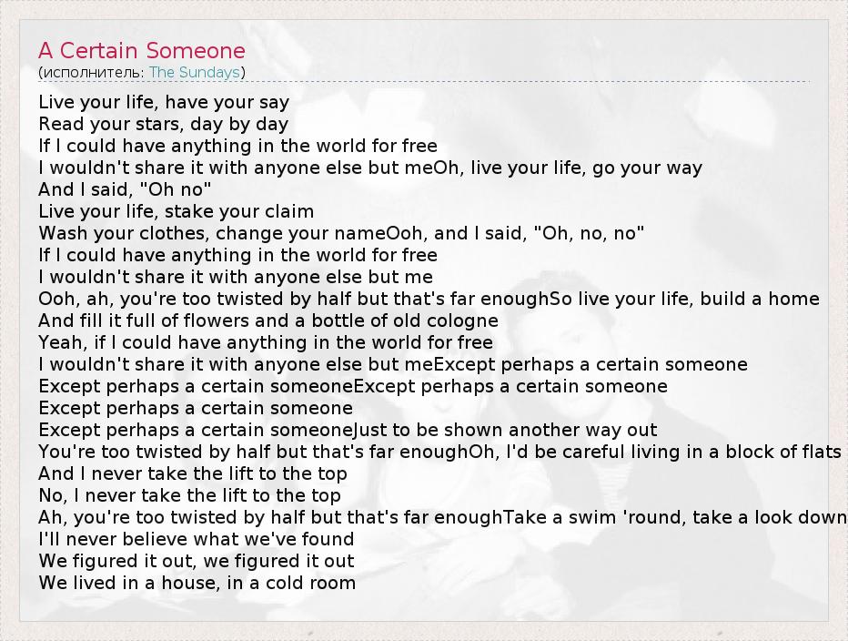 А как ты думаешь, о чем песня "A Certain Someone" ?