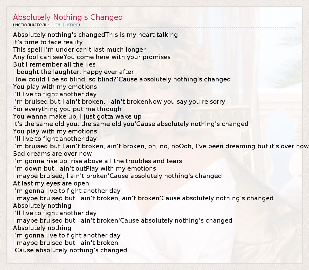 А как ты думаешь, о чем песня "Absolutely Nothing's Changed" ?