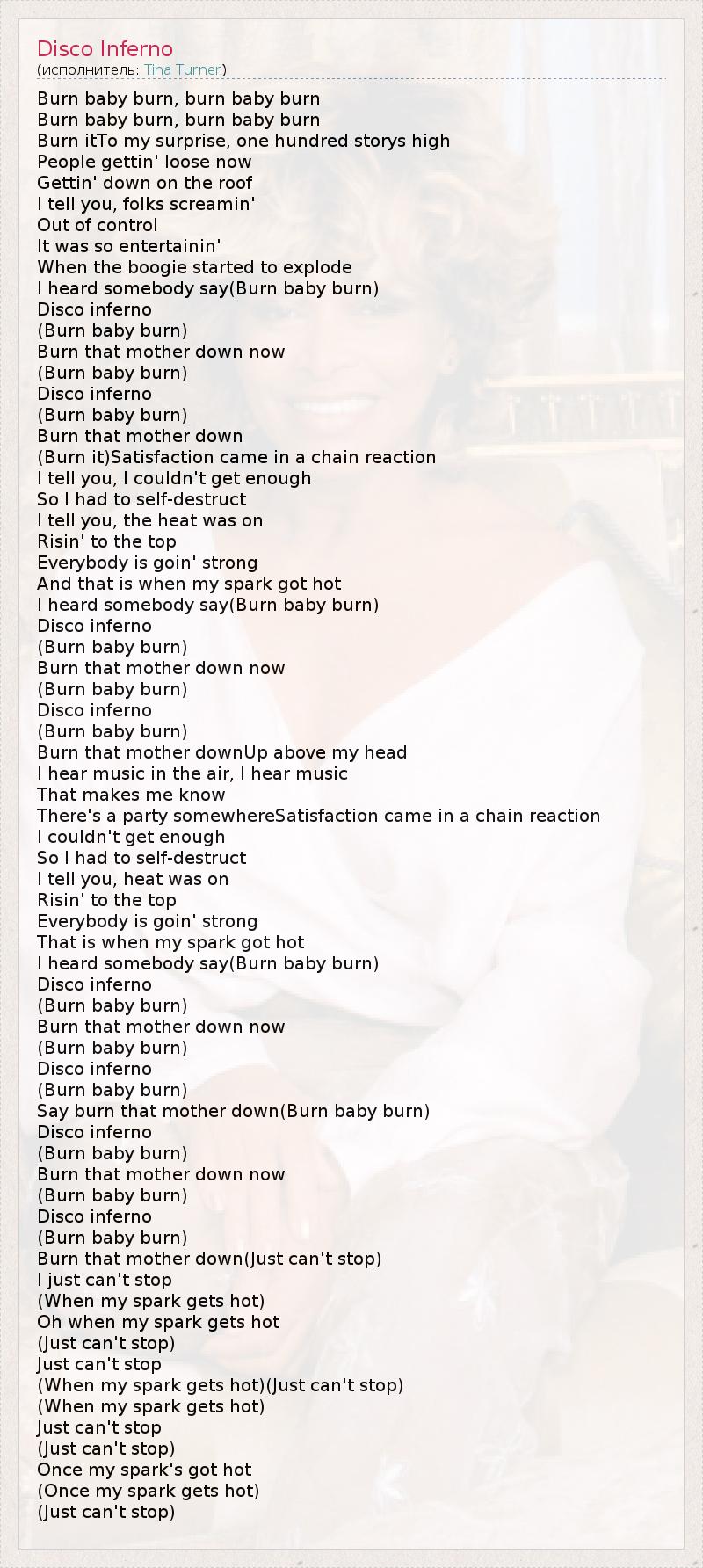 А как ты думаешь, о чем песня "Disco Inferno" ?
