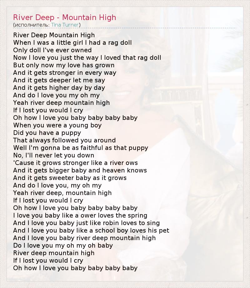 А как ты думаешь, о чем песня "River Deep - Mountain High" ?