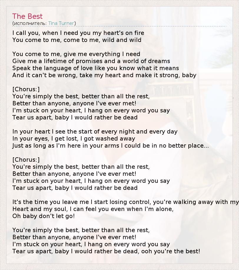 Tear us apart, baby I would rather be dead, ooh you're the best!