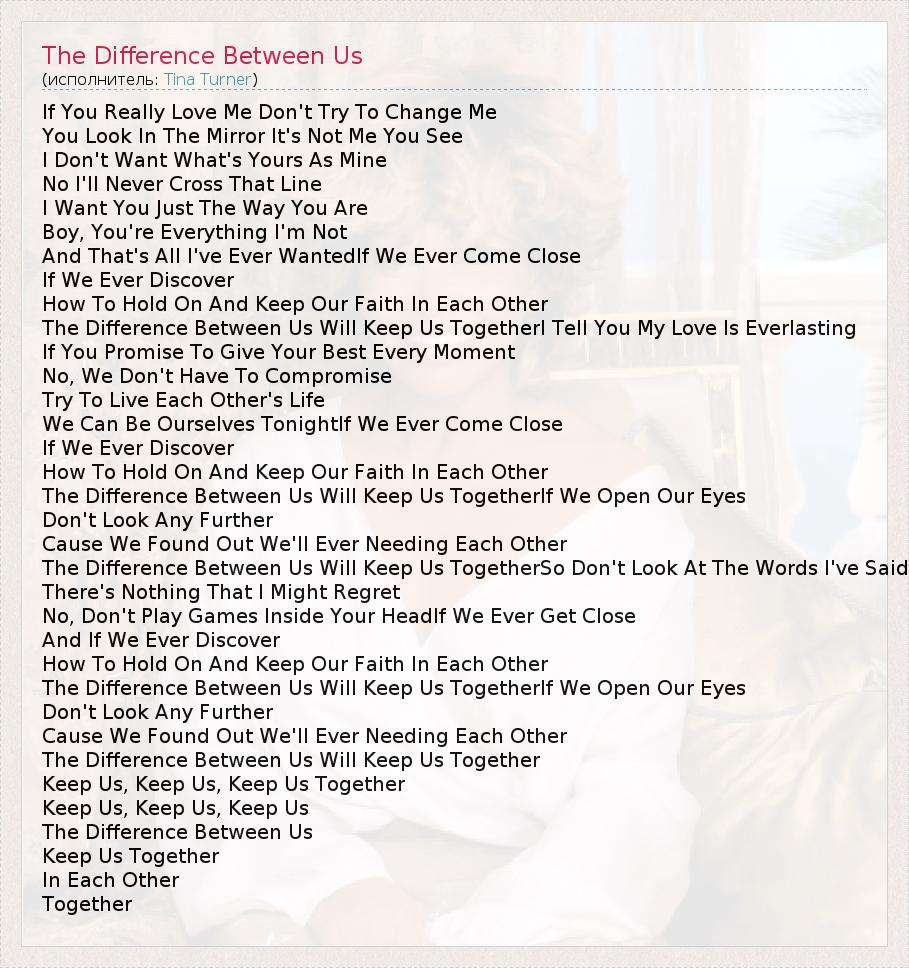 The Difference Between Us Will Keep Us TogetherSo Don't Look At The Words I've Said