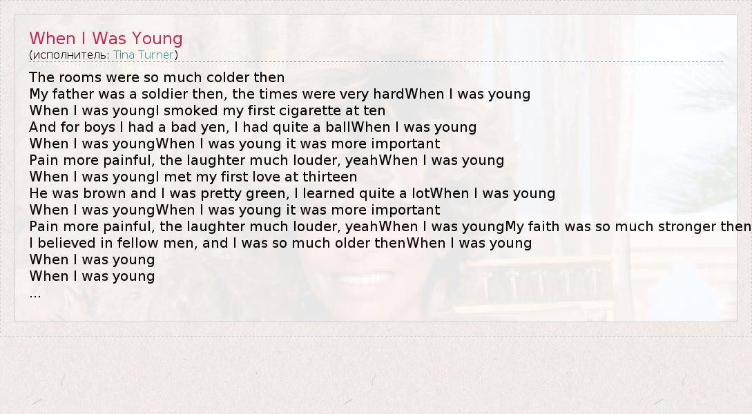 А как ты думаешь, о чем песня "When I Was Young" ?