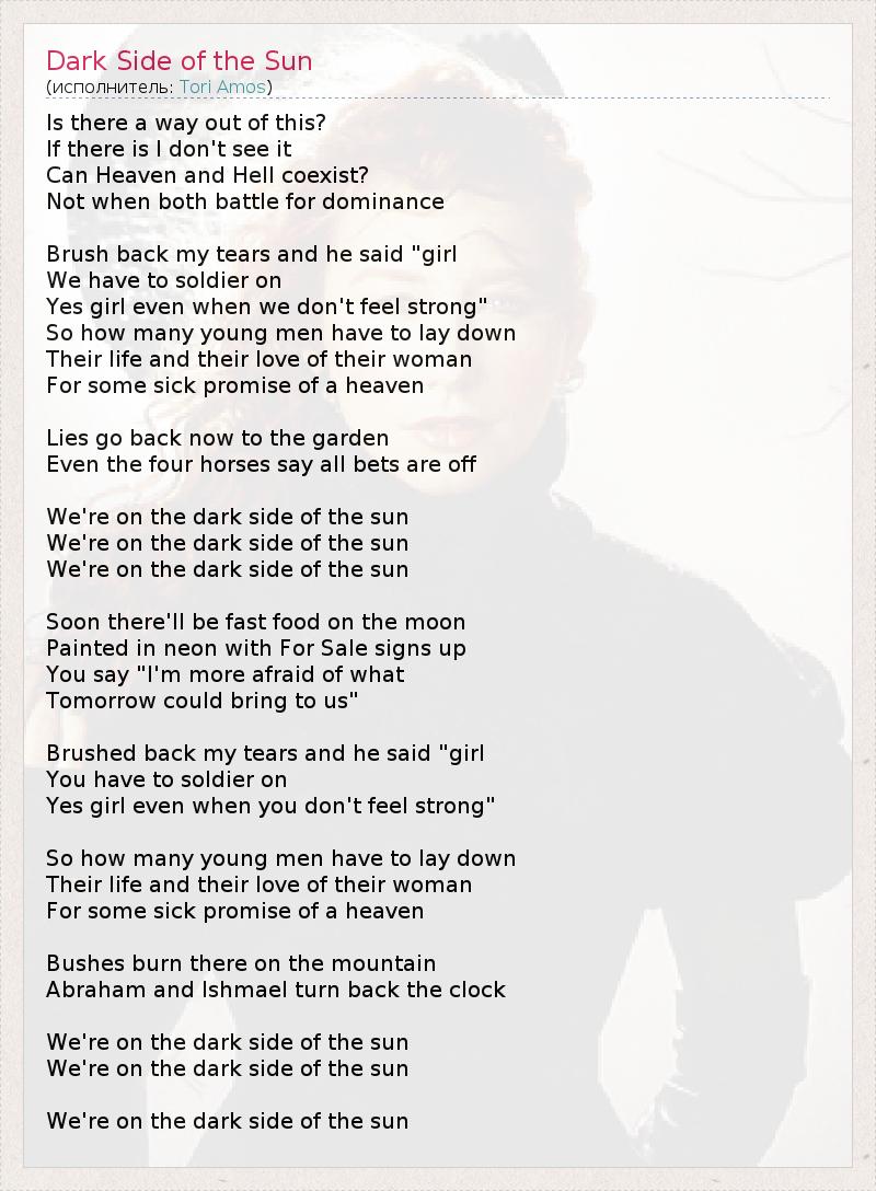 А как ты думаешь, о чем песня "Dark Side of the Sun" ?
