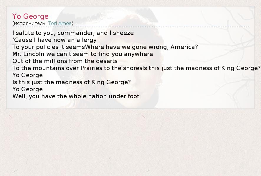 А как ты думаешь, о чем песня "Yo George" ?