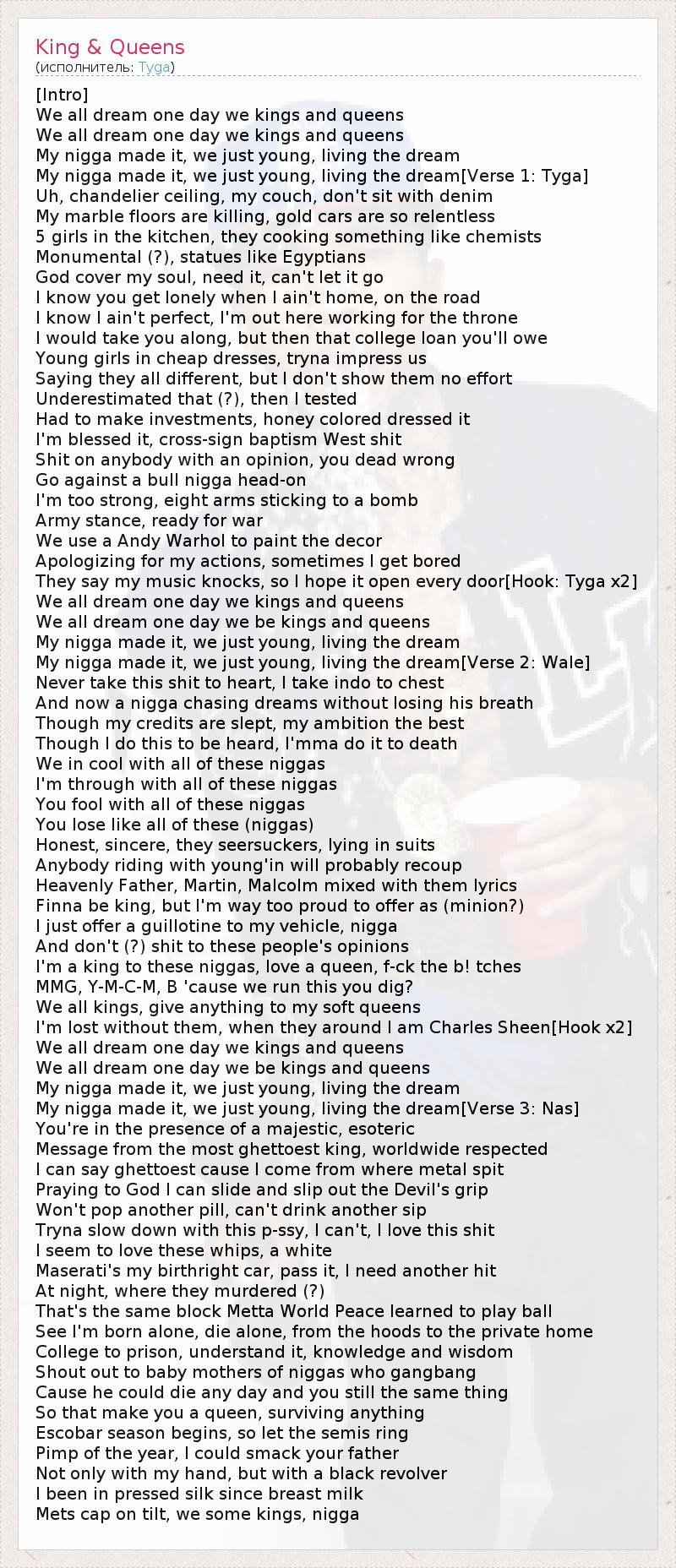 А как ты думаешь, о чем песня "King & Queens" ?