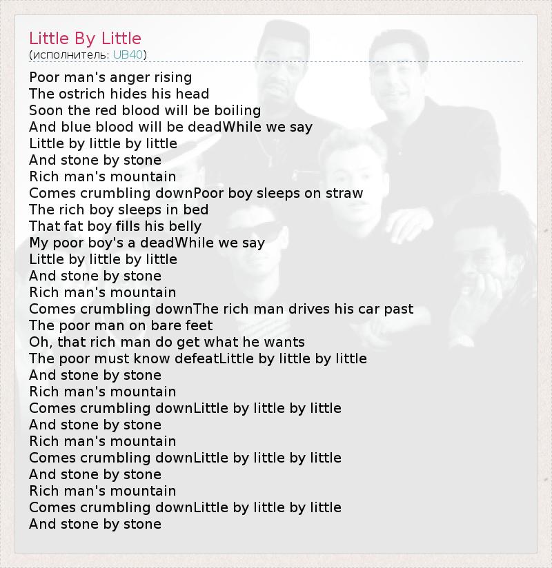 А как ты думаешь, о чем песня "Little By Little" ?