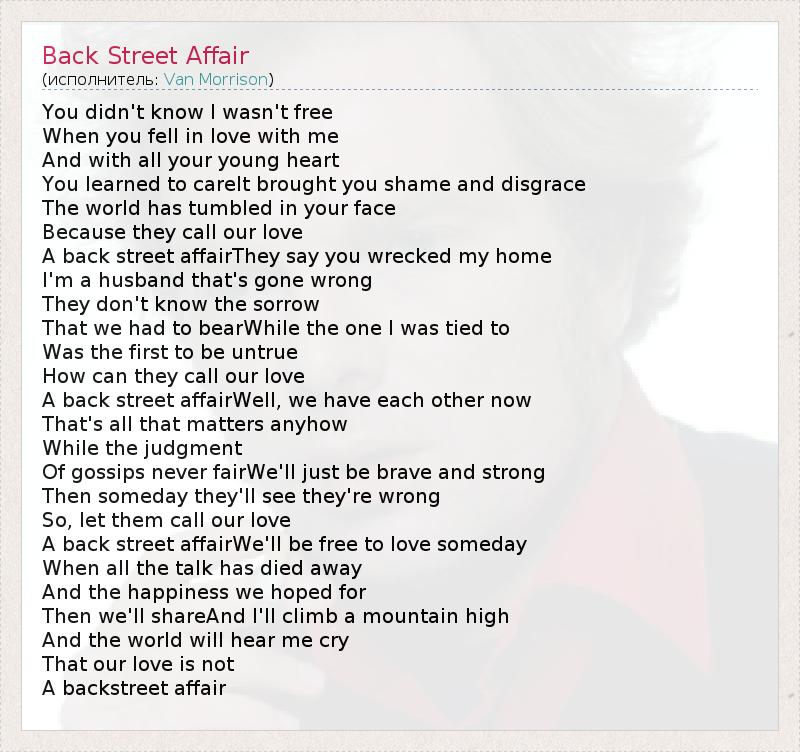 А как ты думаешь, о чем песня "Back Street Affair" ?