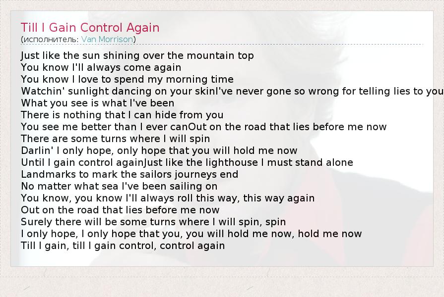 ГлавнаяИсполнителиVan MorrisonTill I Gain Control Again