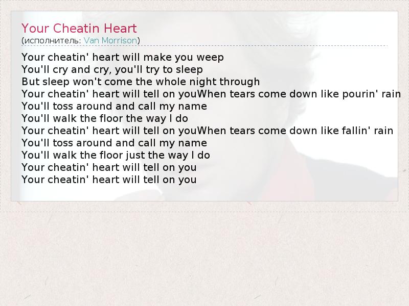 А как ты думаешь, о чем песня "Your Cheatin Heart" ?
