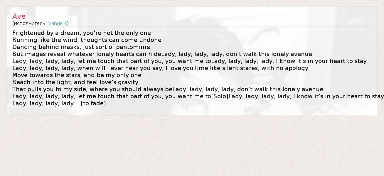 But images reveal whatever lonely hearts can hideLady, lady, lady, lady, don't walk this lonely avenue