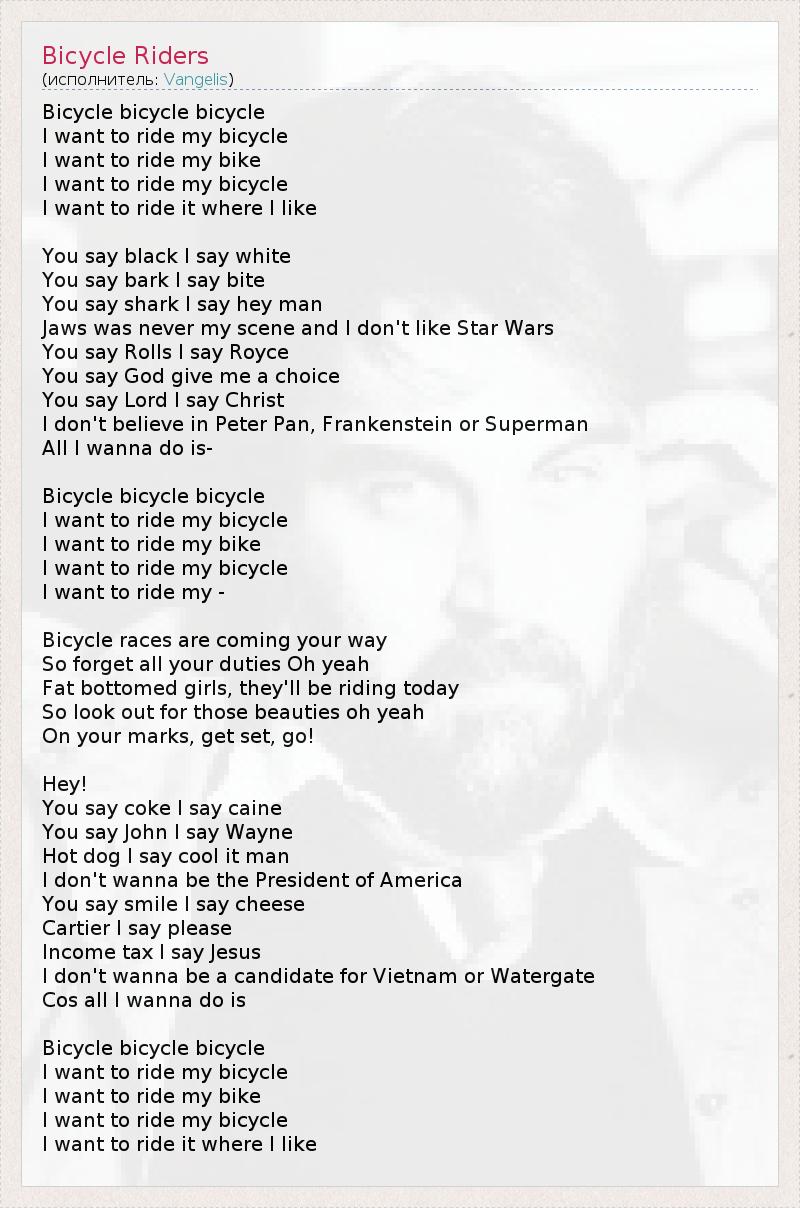 А как ты думаешь, о чем песня "Bicycle Riders" ?