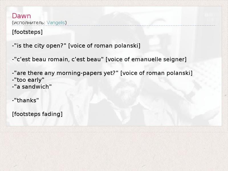 -"are there any morning-papers yet?" [voice of roman polanski]