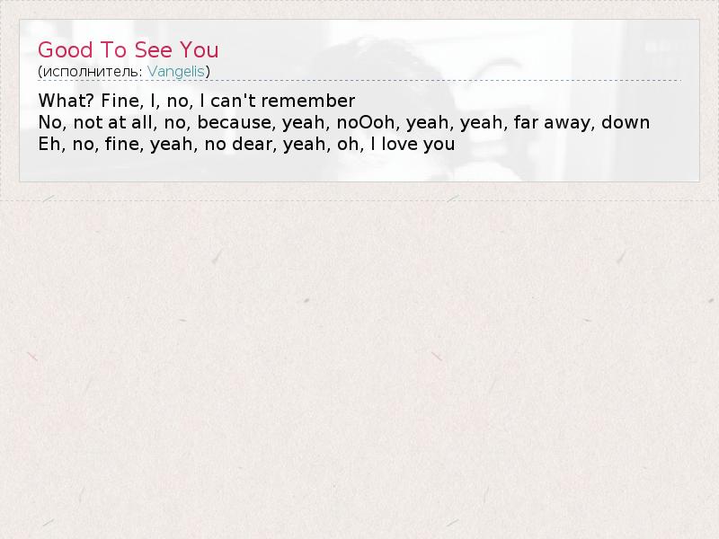 А как ты думаешь, о чем песня "Good To See You" ?